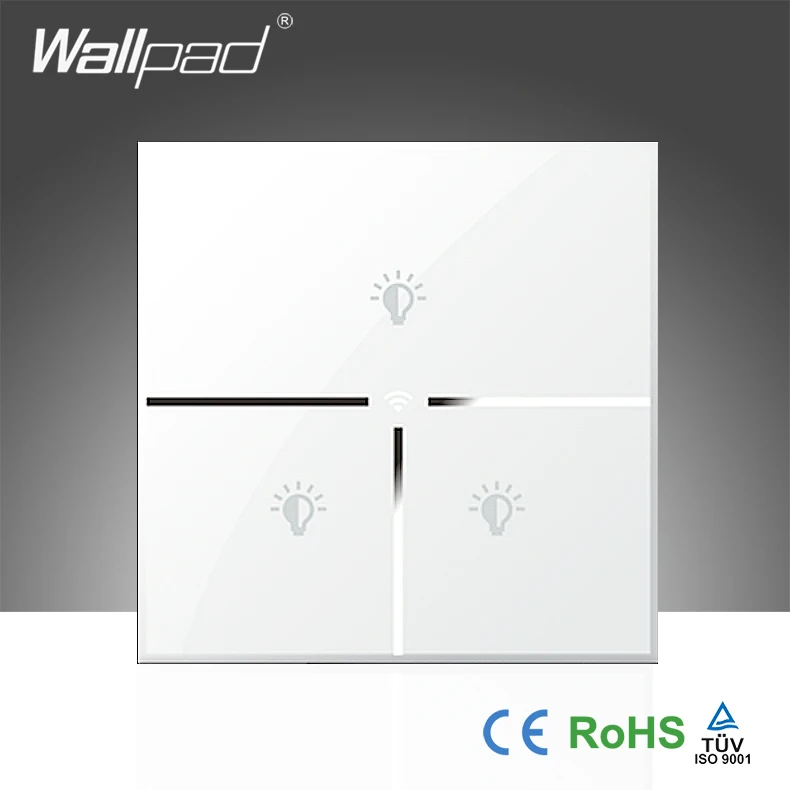 HOT Sale Luxury Wallpad White Glass LED Light UK 110~250V 3 Gang Phone Wifi Wireless Remote Controlled Power