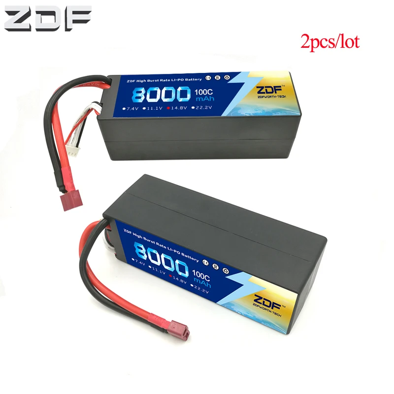 TOP ZDF 2pc/lot Lipo RC Battery 4S 14.8V 8000mAh 100C Max 200C Hard Case for RC Car Truck Boat Helicopt